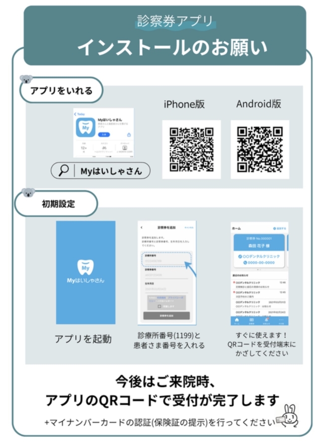 この度大久保歯科では、患者さまの利便性向上を目的として、デジタル診察券アプリ「Myはいしゃさん」を導入いたしました。